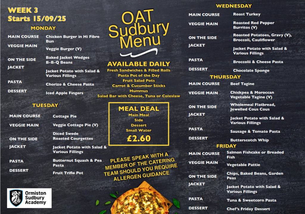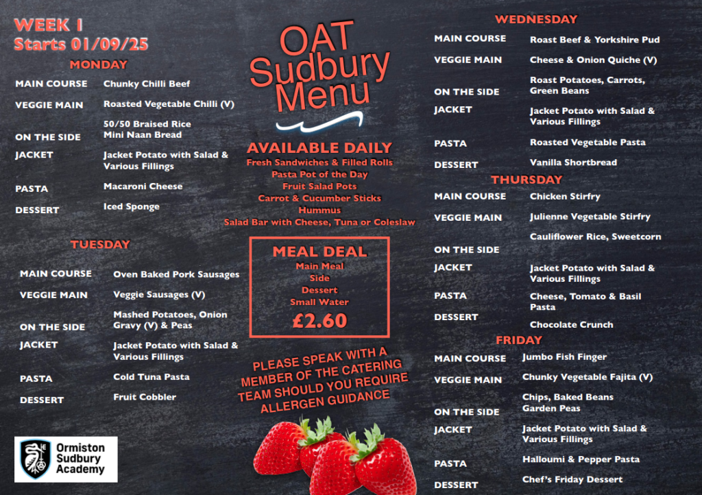 All students will be set up with a cashless account (for parents to access to pay/top up credit) and a PIN (to use at the canteen to pay for food/drink items purchased) when they start at the Academy.