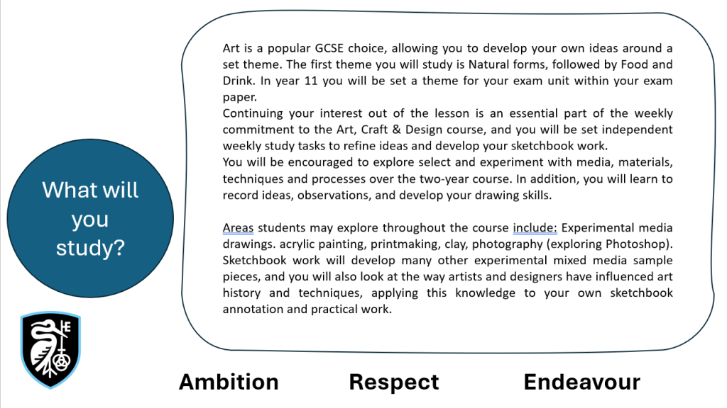 For any general queries relating to our curriculum options, please contact Mr M Robin (Assistant Principal – Curriculum and Outcomes) in the first instance.
