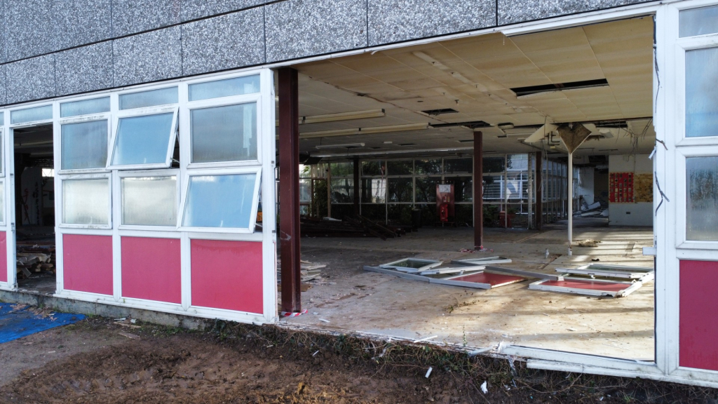 Here are some photos from last month, of what used to be the English faculty corridor. Totally gutted and ready to start coming down.The sport centre is looking so great!